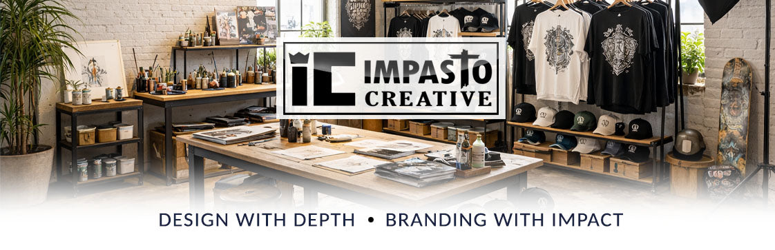 We specialize in original apparel prints, hats, graphic design, custom art and marketing. Impasto: a painting technique where an artist boldly us paint thickly for images/subjects to stand out. We embody the same concept: being deliberate, confident, purposeful. 'Be Bold, Be Seen, Stand Out'