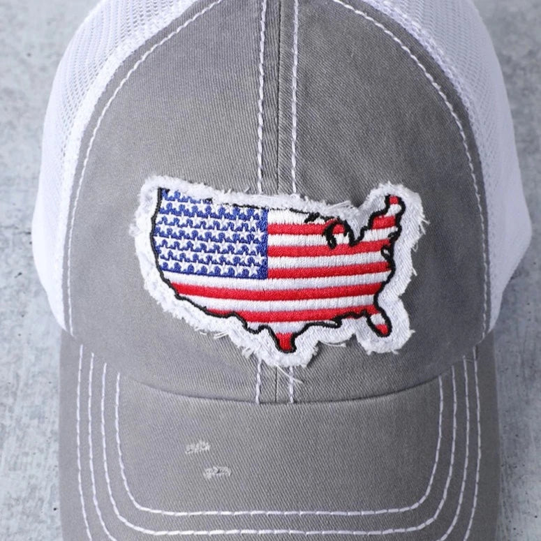 - USA Flag Map patch- Designed with ventilated mesh back panels and a front twill sweatband.- Unstructured, low-profile cap features a pre-curved visor and a six-panel construction. *One size fits all - Adjustable snap tab closure at the back fits everyone*