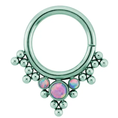 Material: ASTM F-136 Implant Grade Titanium, Swarovski Crystal, Synthetic OpalStyle: Seam Ring Gauge: 16G Diameters: 5/16", 3/8" Gem Colors: White, Pink, Medium Ruby, Dark Ruby, Golden Yellow, Olive, Green, Aqua, Arctic Blue, Amethyst, Medium Blue, Black, Mint, Champagne Cabochon Colors: Green Opal, Pink Opal, White Opal, Blue Opal, Blue Green Opal, Orange Opal, Bold Red Opal, Purple Opal, Lavender Opal, Yellow Opal, Black Opal, Hot Pink Opal All stones change to chosen color. Price shown is per individual ring.This jewelry can be anodized.