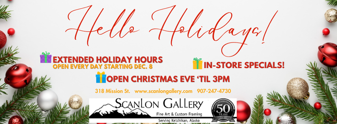 We pride ourselves in being Southeast Alaska's major art center and offer the finest Alaskan art from original paintings to limited edition prints, photography, woodturning, sculptures, glass, ceramics, fine art books, handcrafted jewelry, and much more. We take a special pride in representing talented Alaskan artists.