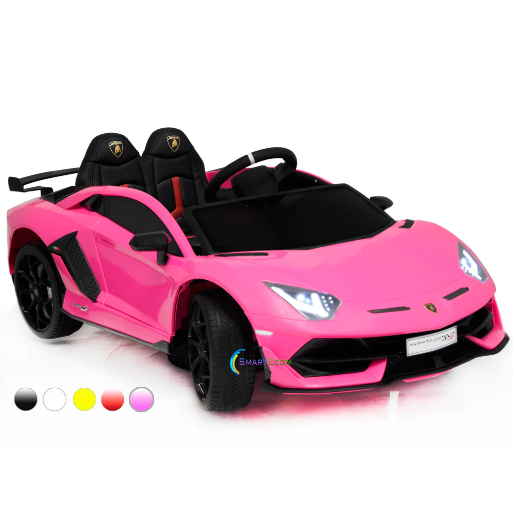 Lambirghini Aventador REALISTIC DESIGN: Officially-licensed Lamborghini Aventador sports car with doors that swing up like a real Lamborghini, a built-in horn, and LED headlights CONNECT YOUR MUSIC: A built-in AUX outlet allows kids to plug in media devices to drive while jamming to their own selection of music MANUAL & REMOTE CONTROL: Parents can let their child drive manually or use the remote control to safely guide them when necessary; remote has forward/reverse controls and speed selection RECHARGEABLE 12V BATTERY: Comes with a charger to allow for hours of playtime and exciting adventures for your children 3.7 MPH MAX SPEED: Little ones can cruise through sidewalks at a safe yet fun 1.9 to 3.7 miles per hour DIMENSIONS: Overall Dimensions: 52"(L) x 28.75"(W) x 18"(H) Weight: 55 lbs. SPECIFICATIONS: Material: Plastic, Metal Weight Capacity: 66 lbs. Max Speed: 3.7mph Ride On Battery Type: 12V 7Ah Charge Time: 8-12 hrs. Charger Type: 12V DC wall adapter Run Time: 1-2 hrs. Rem