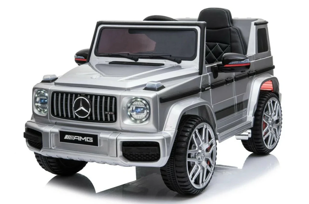 Mercedes G63 specifications Wheels: PlasticSide Mirrors: Yes Model: G63Front Lights: Yes Suspension System: Yes Battery: 12VMusic: YesHorn Sound: YesBrand: MercedesRemote Control: YesRecommended Age Range: 2-5 Material: ECO PlasticPower Display: Yes