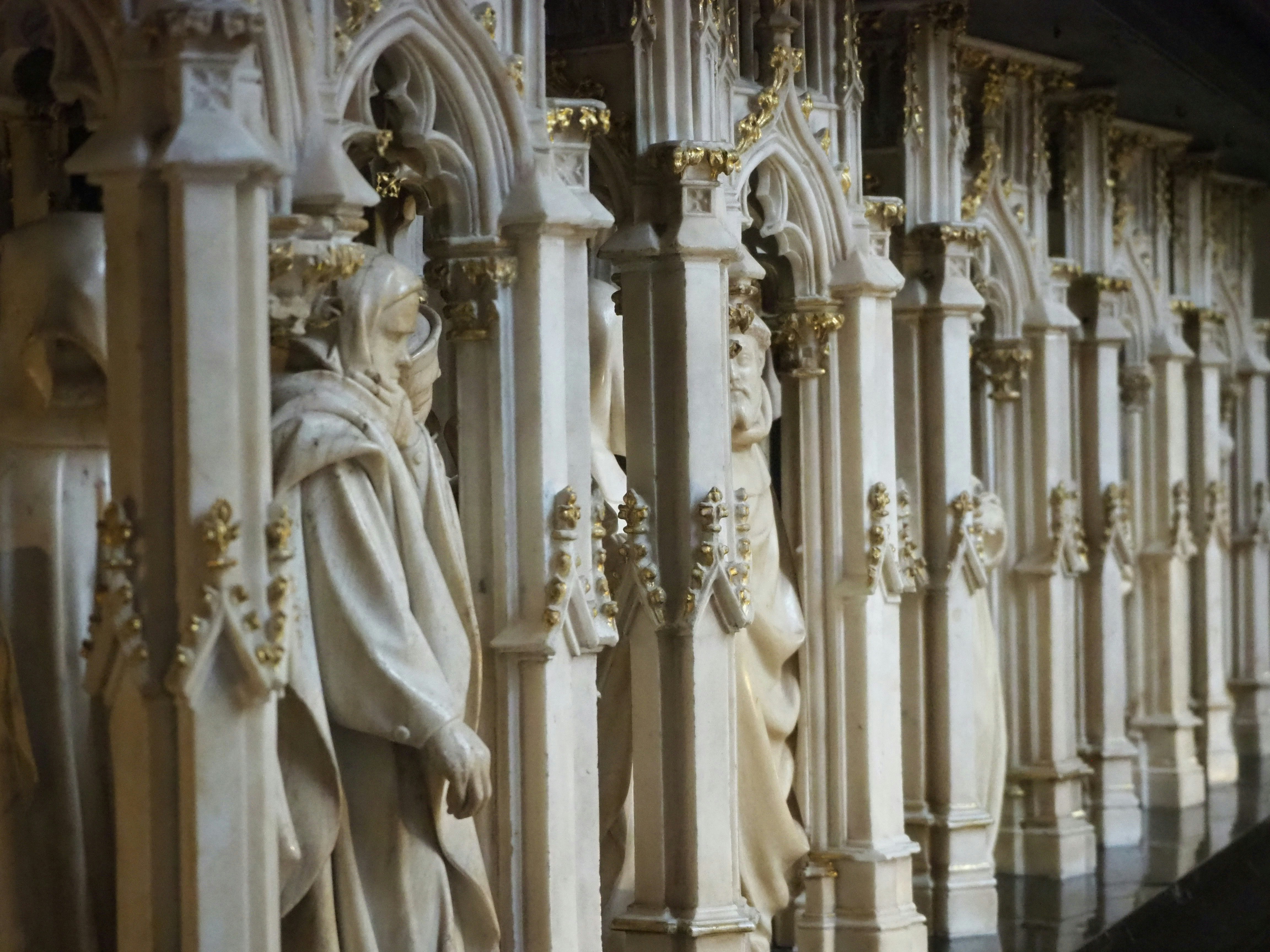 CathedralTerrain: Gothic nave with stained glass glows in diffused light. March overcast softens glare inside; minimal crowds permit lingering at altars.