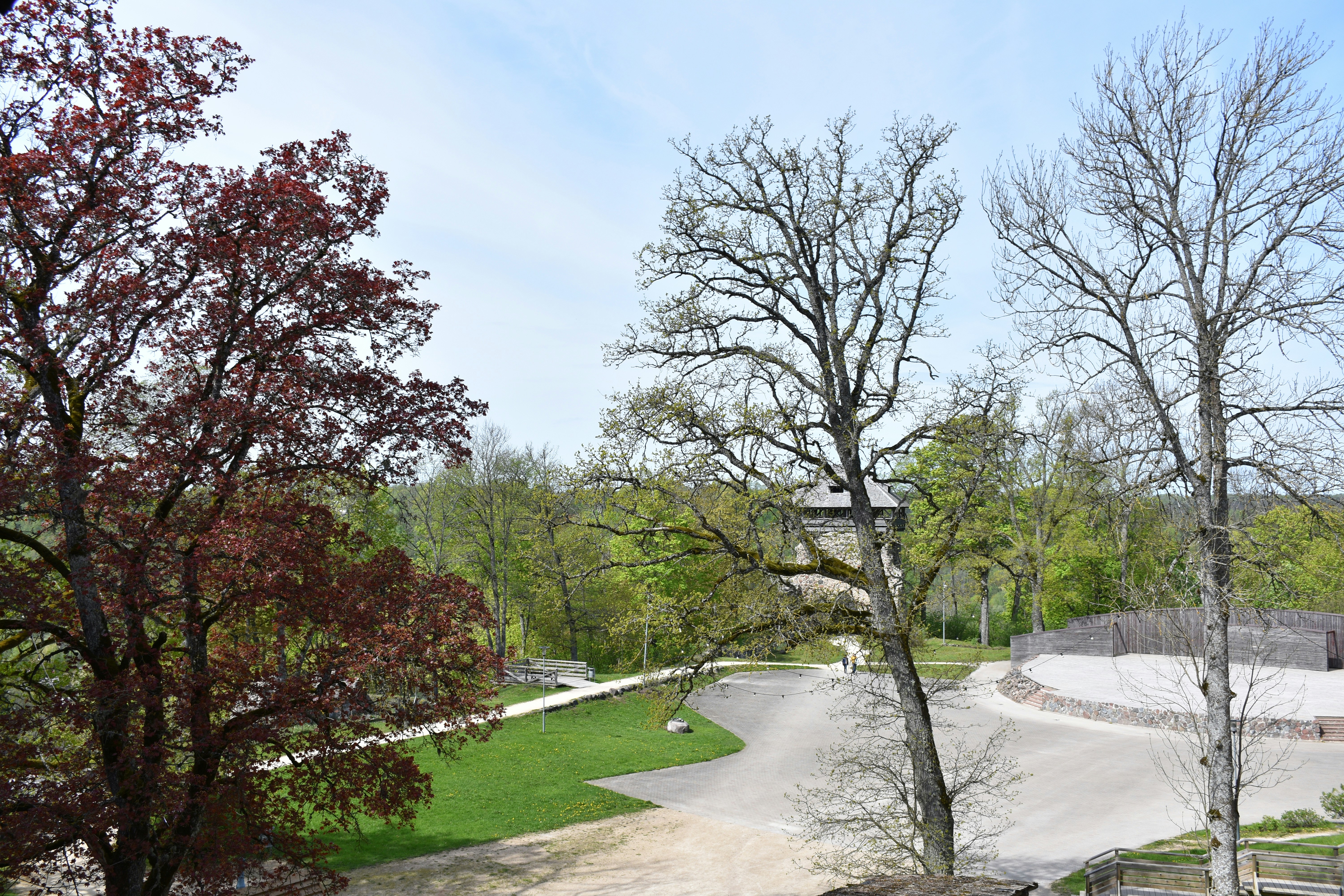 April's mild 32-54F temps and low crowds enhance Sigulda's castles, caves, and valley views. Fresh greenery frames structures; practical for uphill and dirt paths without summer heat or throngs.