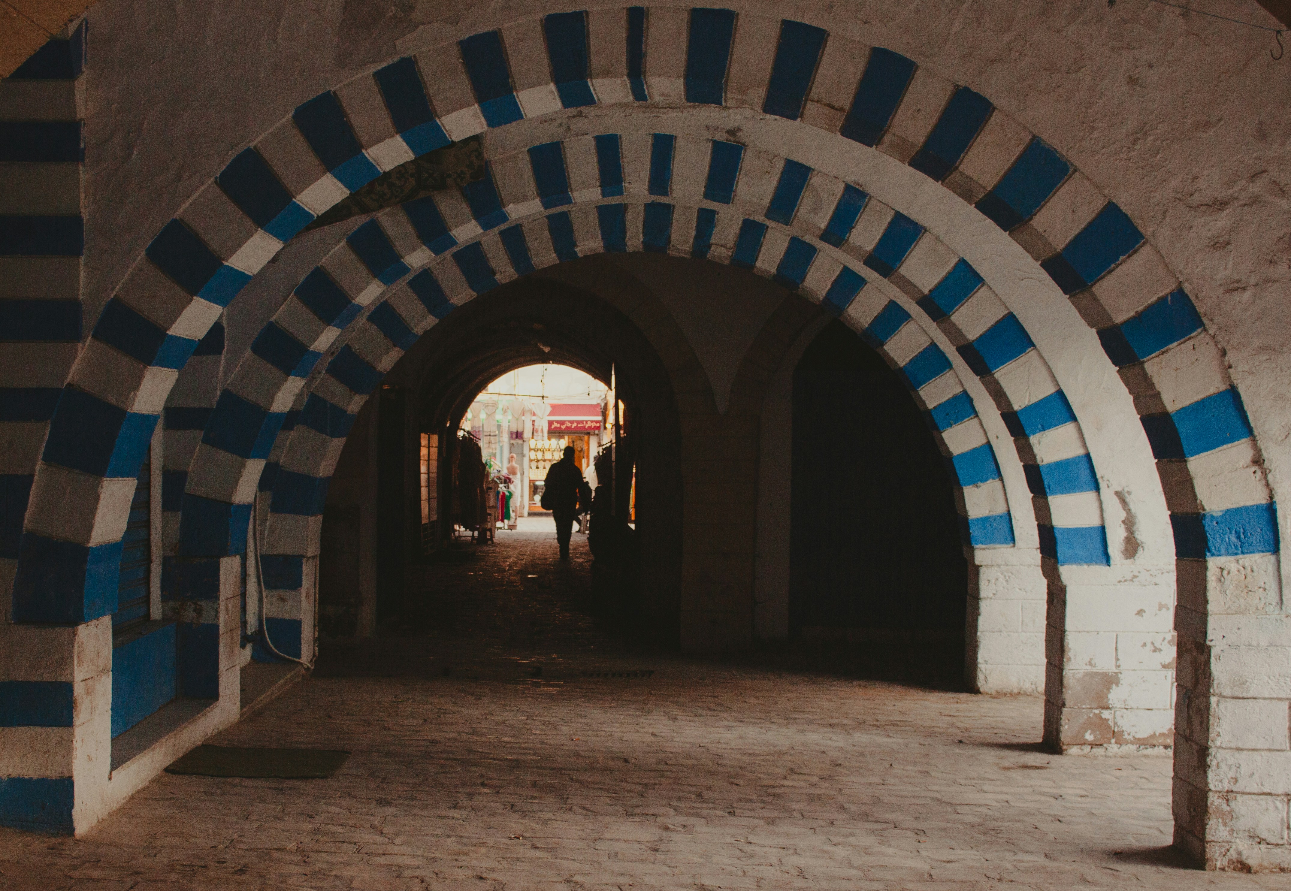 Narrow alleys lined with whitewashed shops and arches. Low March crowds allow unhurried navigation.